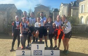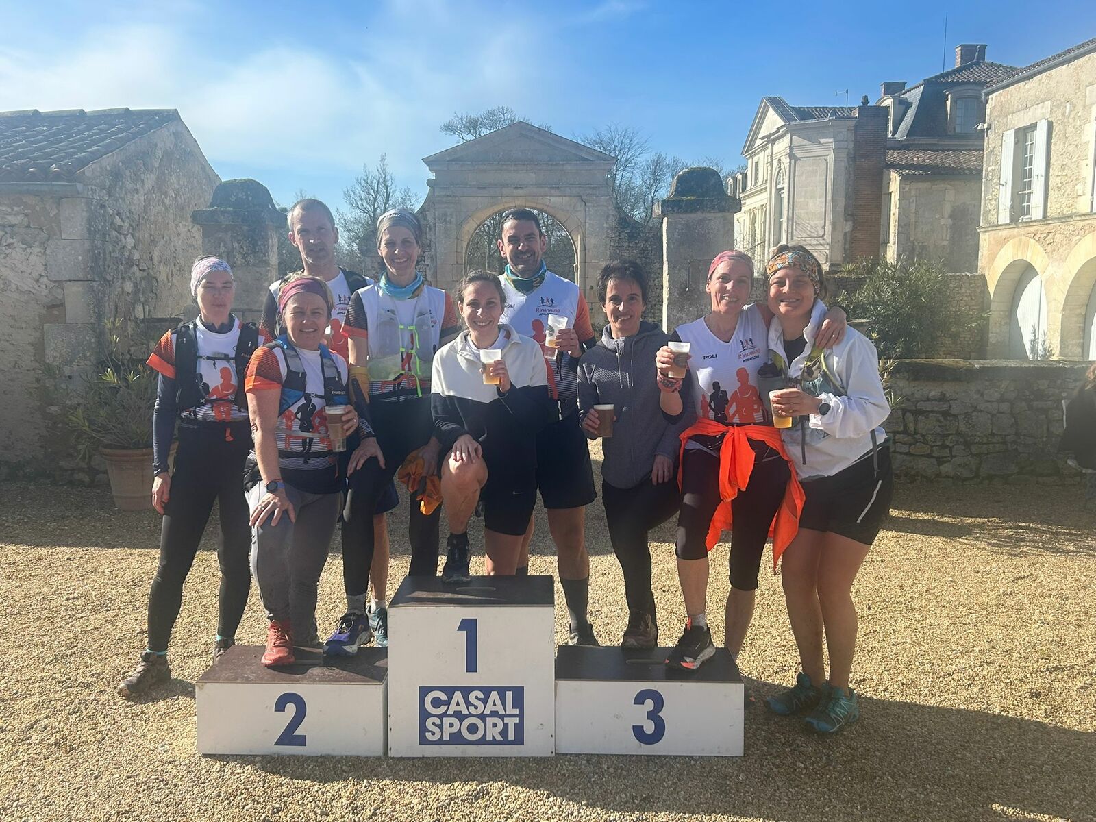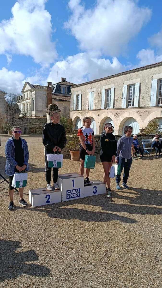 Un petit contingent du R'running Athlétisme a mis le cap sur Marennes et son château pour inaugurer le Trail de la Gataudière dimanche 1er mars. Après 18km au milieu des marais et des bois environnants, les podiums par catégorie ont vu défiler les maillots orange et noir, puisque pas moins de 4 athlètes ont obtenu une médaille ! Quant aux 4 coureurs non médaillés, ils ont également défendu les couleurs avec brio, tous s'étant classés dans le top 10 de leur catégorie. Ca valait bien une bonne bière pour fêter ça 🍻